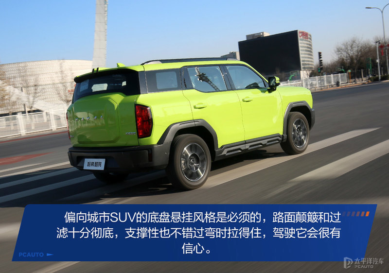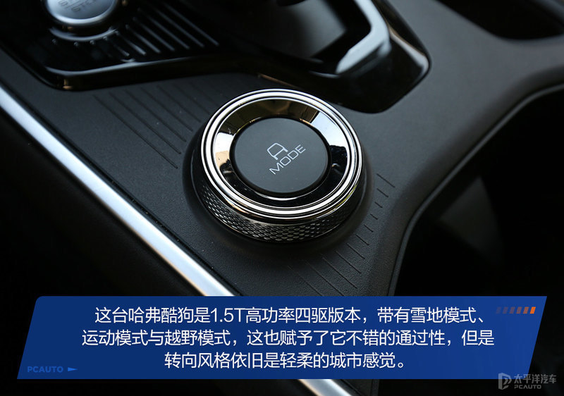 偏向城市SUV的底盘悬挂风格是必须的,路面颠簸和过滤十分彻底,支撑性也不错过弯时拉得住,驾驶它会很有信心。当然,对非铺装路面而言四驱系统还提供雪地与越野模式选择,21°的接近角与25°的离去角可以轻松应对突发路况,所以哈弗酷狗硬派的造型绝对不是摆设,它可以很好的胜任城市所有的工作,同时也兼顾了一定的越野能力。