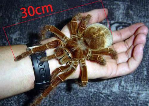 亚马逊丛林是世界最大的森林,森林茂密,动植物种类繁多,有“世界动植物王国”之称。这个地方生活着一种世界上最大的蜘蛛——巨人食鸟蛛。亚马逊巨人食鸟蛛是蛛型纲内公认的最大体型的蜘蛛,它身体从头到脚长度,最长可以达到30cm,体重可达230克 ,是当之无愧的“蜘蛛王”。