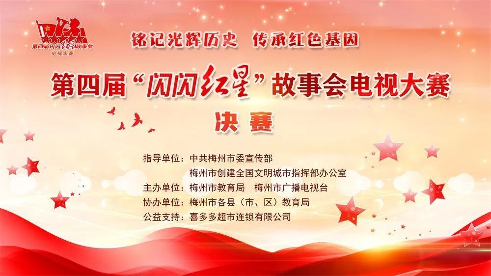 今天下午,由市委宣传部、市文明办指导,市广播电视台和市教育局联合主办,喜多多超市连锁有限公司公益支持的第四届“闪闪红星”故事会电视大赛·决赛在市广播电视台演播大厅精彩上演。