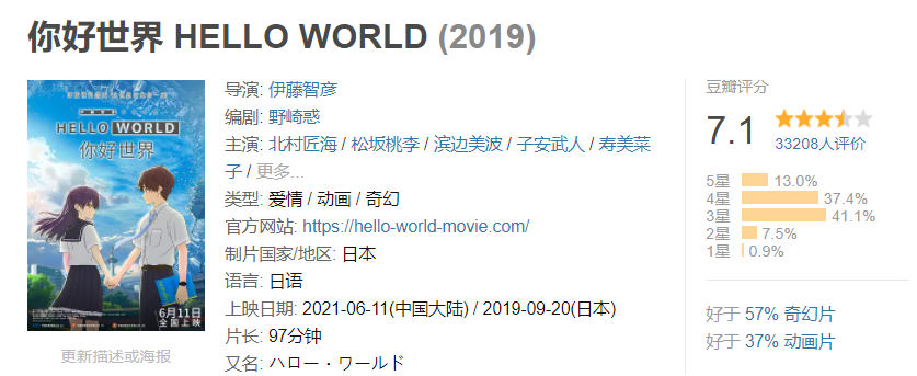 可以说,《你好世界》是被低估了的一部影片,值得推荐。