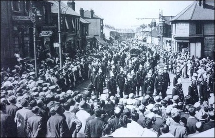 1902 年 9 月 19 日,两千名支持者在阿拉巴马州伯明翰的希洛浸信会教堂,听取黑人运动领袖布克·T·华盛顿的讲话。教堂刚建成不久,从大门走到教堂要经过一段陡峭的楼梯。华盛顿演讲结束后,一些听众在离场时发生了口角,有人起哄道“战斗”了。在美式英语中“战斗”和“交火”的意思相近,所以有人听成着火了。