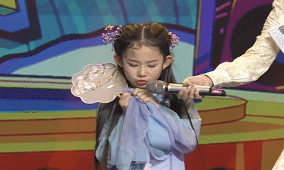 年仅9岁的古风小仙女“古金灵”身着紫衣长发及腰,一双笑眼给大家舞了一曲《燕无歇》,将古典美人的眉目传情运用到极致。