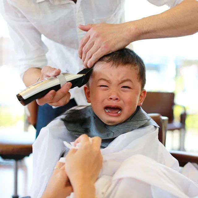 “第一次去剪头发,妈妈一直在安慰你,爸爸我一直在拍照。”