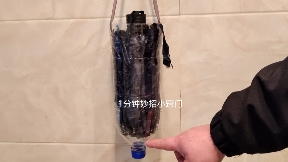 下雨天回家,我们都会打伞,回家之后,雨伞上面都是雨滴,很容易把家里弄湿,其实,我们只要把雨伞,放在大号塑料瓶里面收纳,这样雨伞上面的雨滴就会自动滴落在瓶子里面,雨伞上面的雨滴,就不会滴得到处都是,等到雨滴滤干了之后,就可以打开雨伞晾晒一会,这样就不会把家里弄得湿嗒嗒地。
