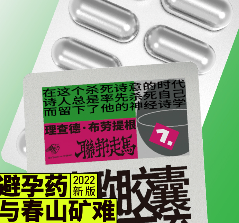 联邦走马的胶囊诗集里,分装了布劳提根《避孕药与春山矿难》里最经典的40首诗,每板10首,每一首都是以引爆幻想神经的小药丸。
