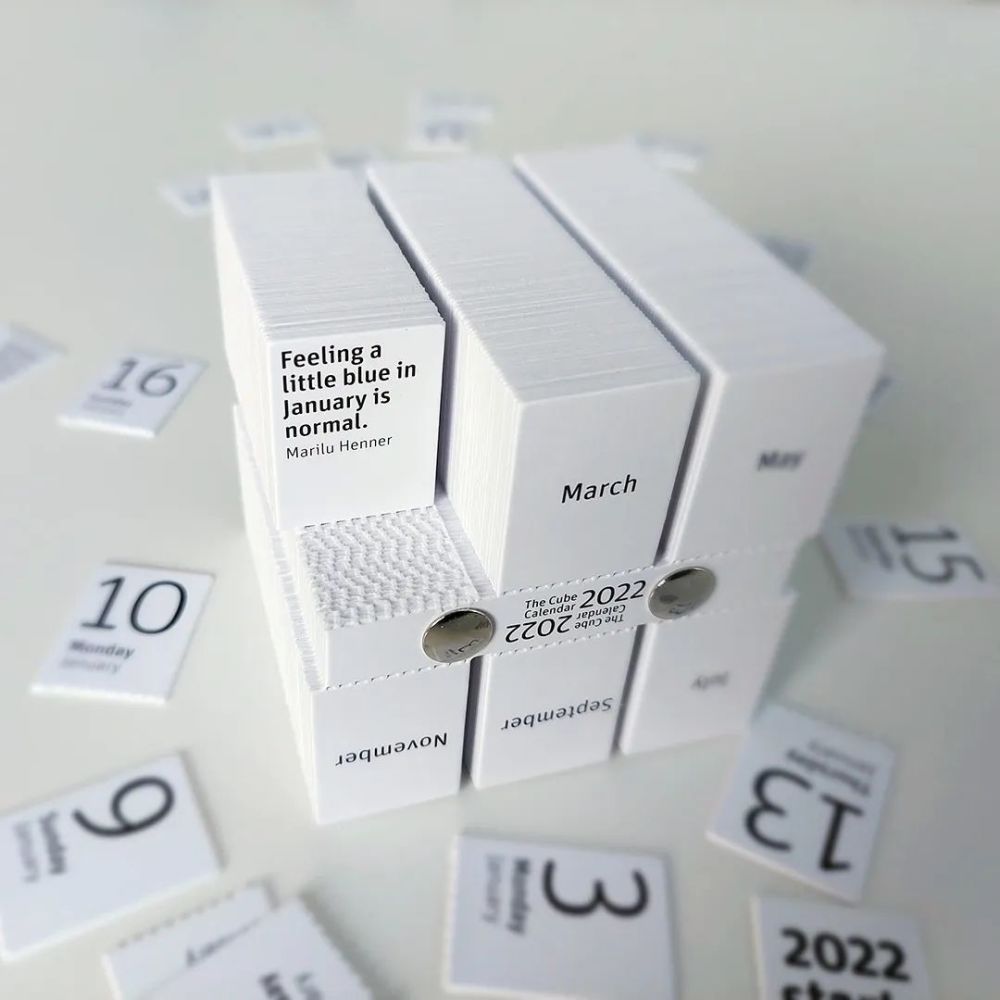 这块魔方日历(The Cube Calendar)出自荷兰设计师 Philip Stroomberg 之手,只用单纯的黑白两色和几何形象来表现纯粹的时间概念,曾获得过国际设计大奖赛银奖、欧洲设计奖铜奖等在内的9个国际大奖,也是现代荷兰风格派在日历设计上的一个出色的作品。