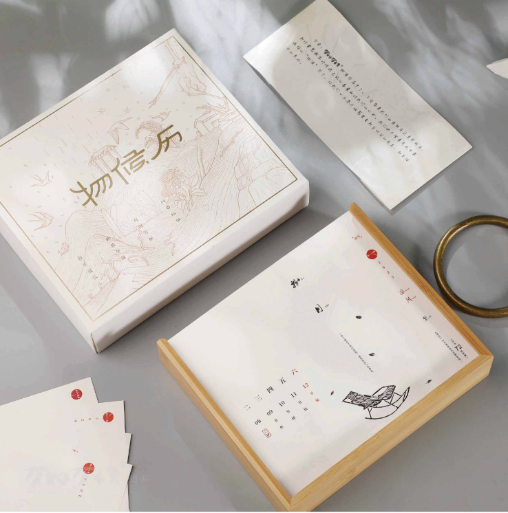 区别于惯常所见的日历,这本物候历以常用农历为轴,七十二候为主、二十四节气为节点、一候五天为一页,用原创插画的表现形式,再现经典传承。