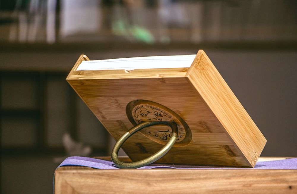 竹盒台历设立,椒图辟邪,门环支撑,宁静古朴,古风感满满。