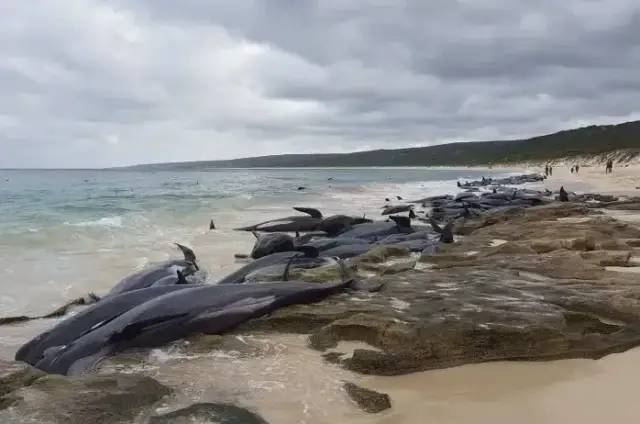 ▲ 2020年9月,澳大利亚海湾搁浅鲸鱼470头
