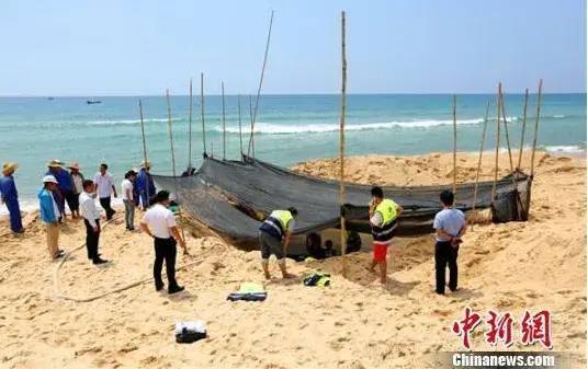 2016年5月16日,海南省陵水黎族自治县香水湾海滩,一头重约一吨的领航鲸搁浅,呼吸频率紊乱,呛水严重。