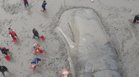 所以对于发现鲸鱼搁浅时,救援行动十分紧迫。