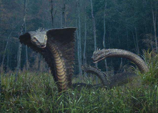 国产怪兽电影中,有关“大蛇”题材的是最多的,因为人对蛇存在本能的恐惧感,而《大蛇王》电影在视觉效果上花了很大精力,通过拟真和后期处理给观众带来了非常逼真的蛇王形象,用死亡追捕和血腥场面刺激观众的感官。贯穿始终的动作戏让蛇王的恐怖形象更加逼近众人。