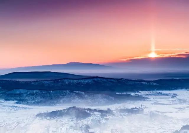 冰雾是漠河特有的一种自然现象,冰雾完全由冰晶组成的雾,能见度不足十米,一般气温在-45℃以下时出现,当地人常称为“冒白烟”。