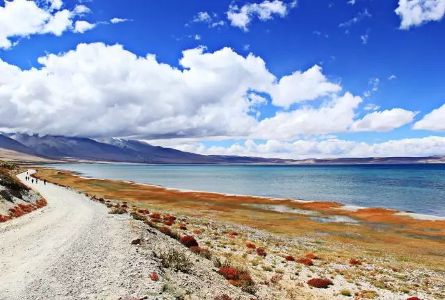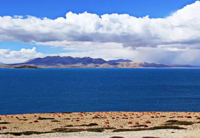 玛旁雍错的湖水与蓝天相映,博大而坦荡,佛教信徒把她当做世界的中心,一路行走,一路朝拜!