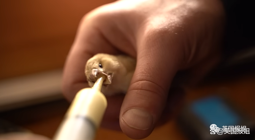 阿尔温不得不轻轻用大拇指按住它,一边学着鸟叫安抚,一边用喂食器碰它的嘴,才让它喝下去了第一滴。