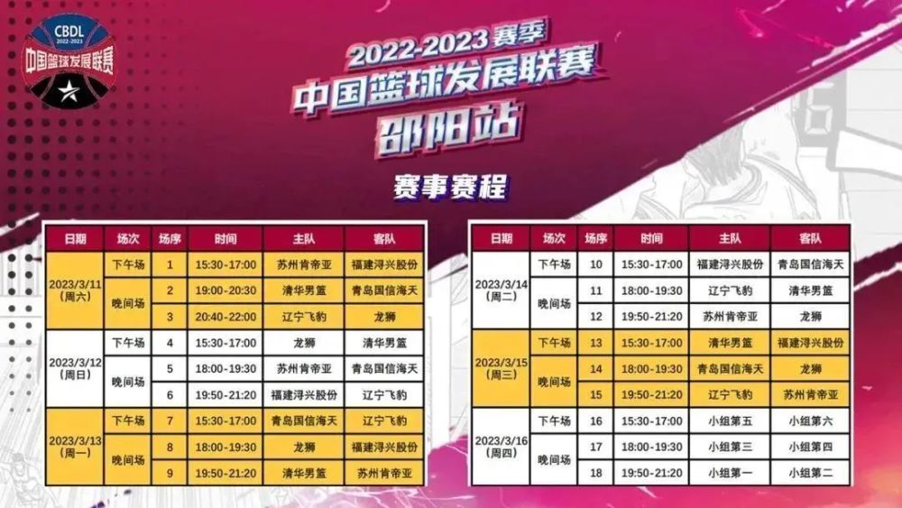 今日,2022-2023赛季中国篮球发展联赛邵阳站将迎来首个比赛日的较量。江苏肯帝亚与福建浔兴两队将在下午率先开打。