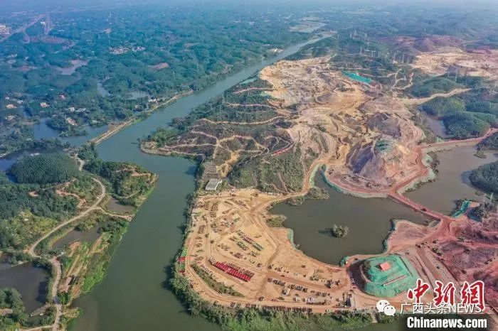 航拍平陆运河青年枢纽施工现场。陈冠言 摄