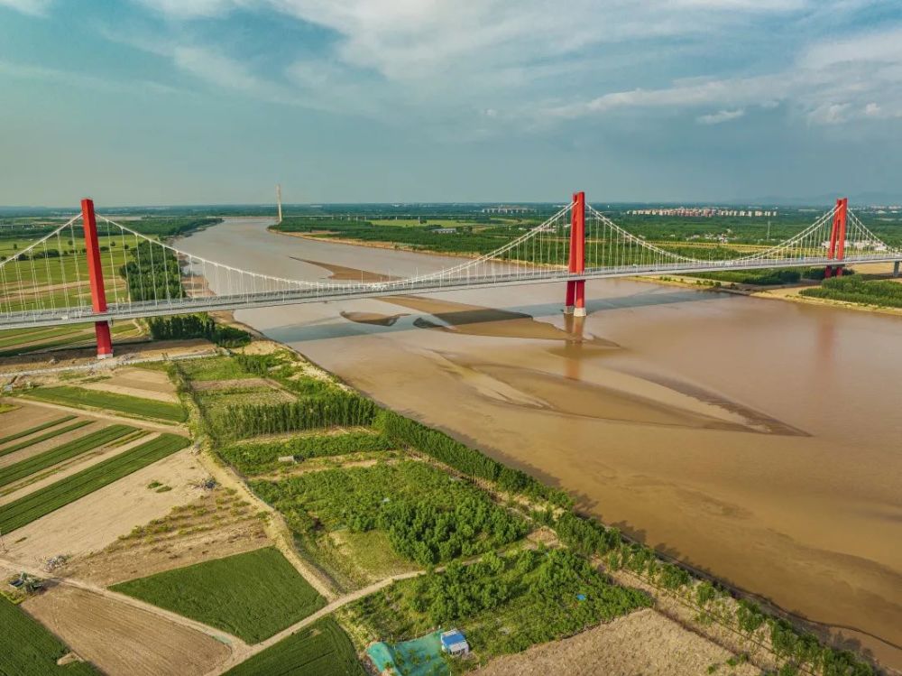 取景自济南黄河凤凰大桥,黄河下游地区河床滩面高出两岸地面,称作“悬河”