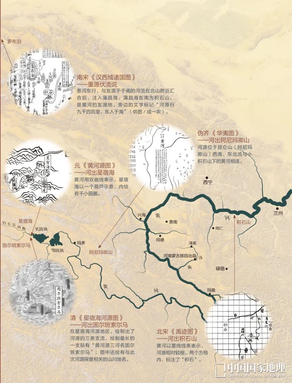 在中国古代文献中,“河出星宿海”“河出积石山”“重源伏流说”等关于黄河源头的说法层出不穷,积石山、阿尼玛卿山、约古宗列盆地等都曾被官方奉为黄河水之源。纵观不同时代,古代多以“河源唯远”为源头确定法则,同时也不乏地缘政治、神灵祭祀方面的考量。
