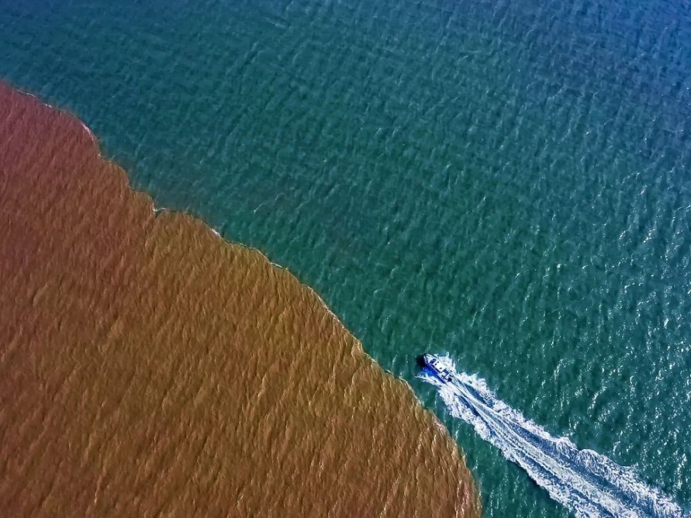 山东东营黄河入海口,黄蓝交汇壮丽奇观