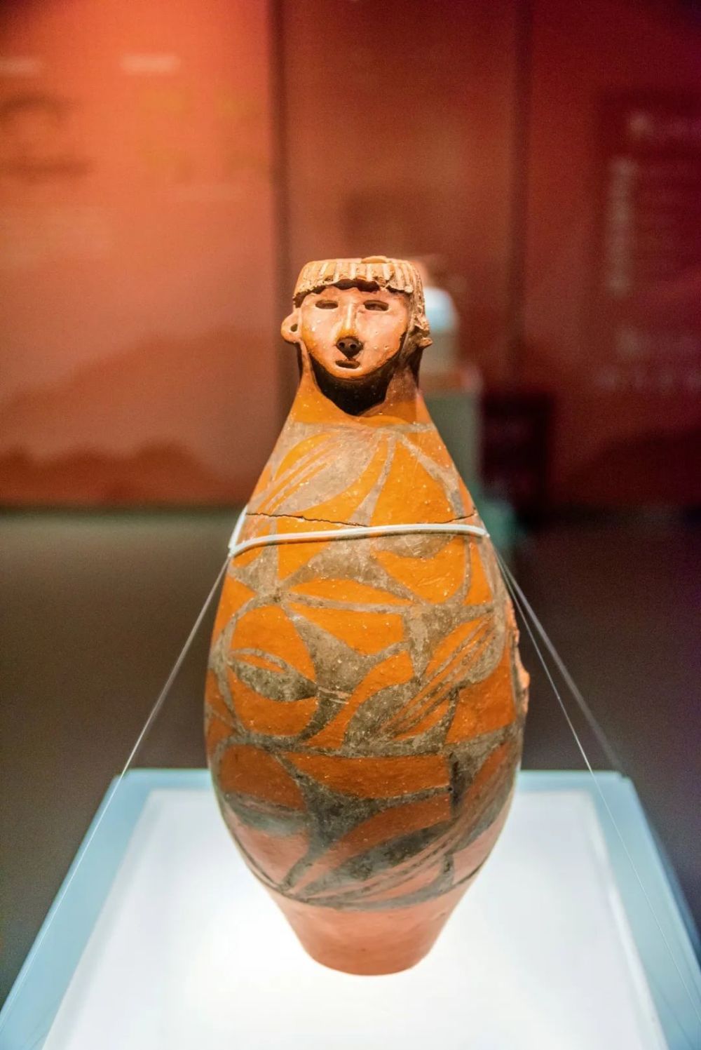 庙底沟文化花卉纹人头形器口彩陶瓶,弧线灵动变幻