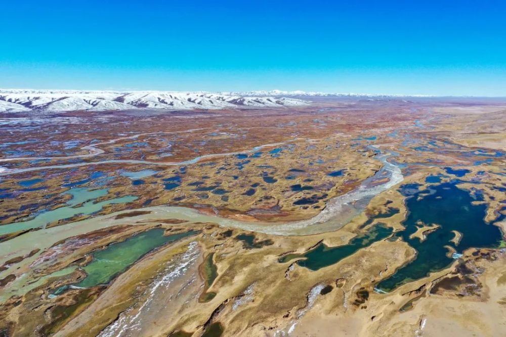 其后鄂陵湖将湖水向东倾泄而出,黄河一路流走东去。从青海果洛藏族自治州的玛多县,到四川阿坝藏族羌族自治州的若尔盖县和红原县,以及甘肃省甘南藏族自治州碌曲县,这里是黄河源头面积最大的高寒湿地,又有众多河流汇入黄河。