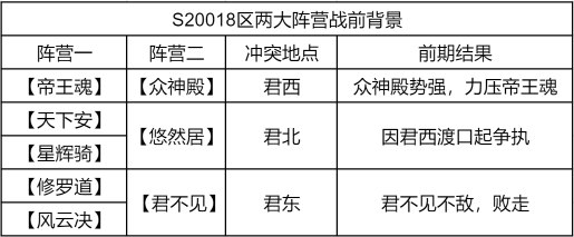 自S20018区资源州开放起,君西君东便是战火不断,分为两大阵营。