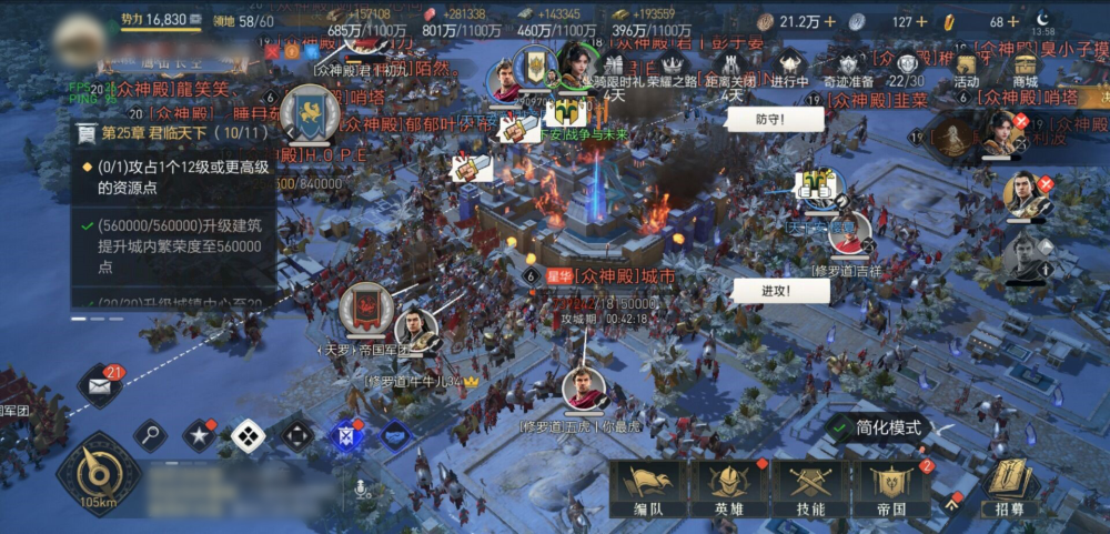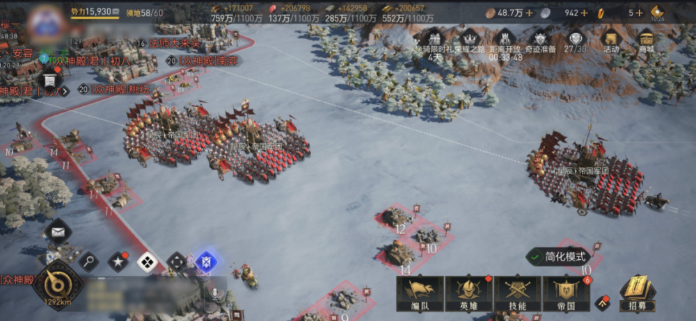 君临最终决战,五盟联军趁君临内城尚未开放之际,同时宣战,左右包夹,以迅雷之势连下【众神殿】西面天守关及东面两座六级城,无间歇持续推进,闪击出战,意图将【众神殿】势力清扫一空,防止其借九级关隘,进入君临内城逃离。