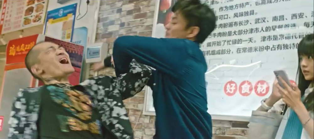 他演的是一个街边牛肉面店的小老板,由于儿子结婚缺钱,也去借了套路贷,便同样遭遇暴力催讨,好在成锐及时出手相救,达叔也只是受了点惊吓。