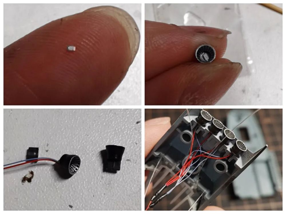 舷窗部分采用了车模加灯的做法添加了导光光纤,导光光纤建议买0.3的,比较软,不容易折断,0.5虽然比较亮,但是需要较长的距离才能不被折断