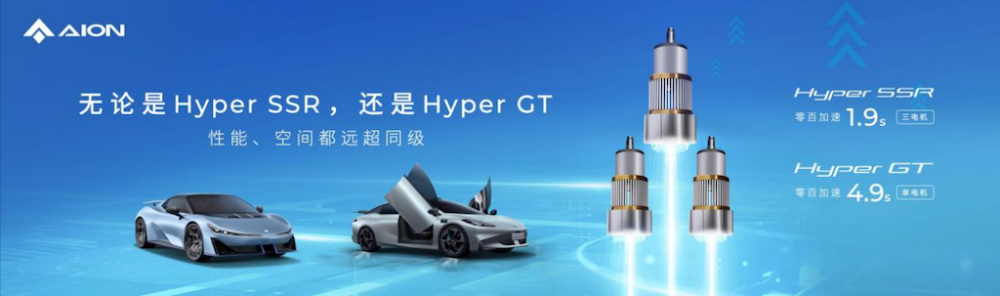也正是得益于此,埃安的Hyper SSR和Hyper GT具有着生俱来的极致性能及极致空间体验,埃安Hyper SSR可以实现多电机1.9秒百公里加速,Hyper GT则可以实现单电机4.9秒百公里加速,堪称全球最快“加速度”。