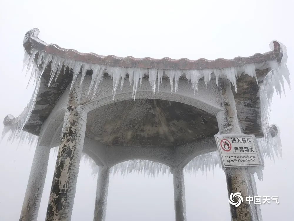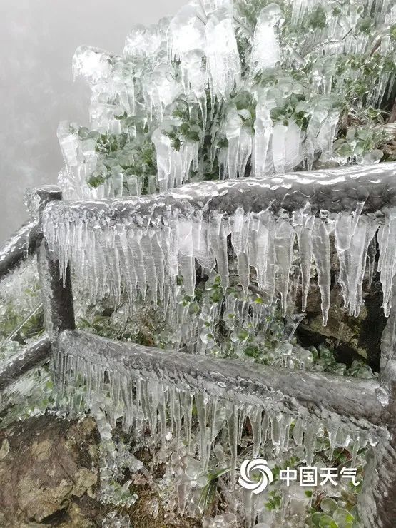 贵港市平天山上出现雨凇美景,