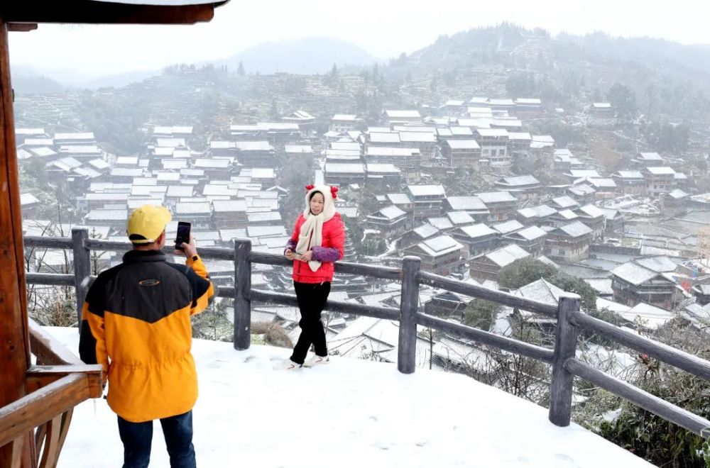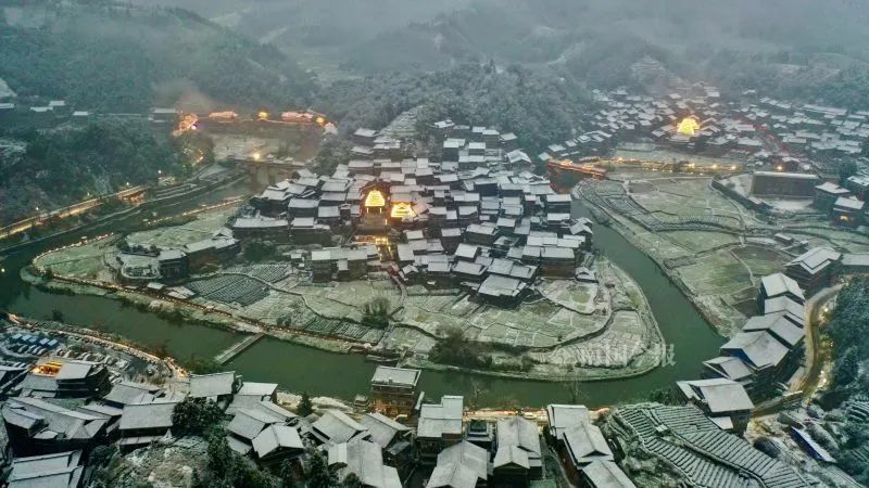 纷飞的鹅毛大雪将程阳八寨景区装扮一新,