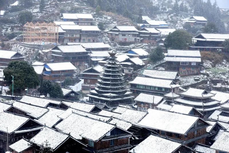 三江侗寨雪景美如画