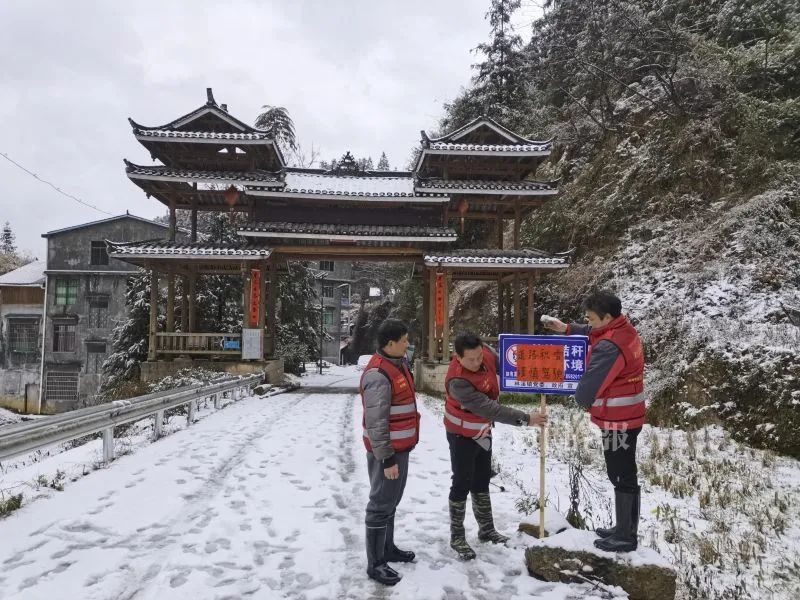当天,三江普降大雪,一些海拔较高的村寨及道路结冰,交通不便,交通管理部门及各村屯的驻村工作队员、村两委积极加强村屯道路交通的安全排查,并设立警示牌,确保群众的生命和财产安全。