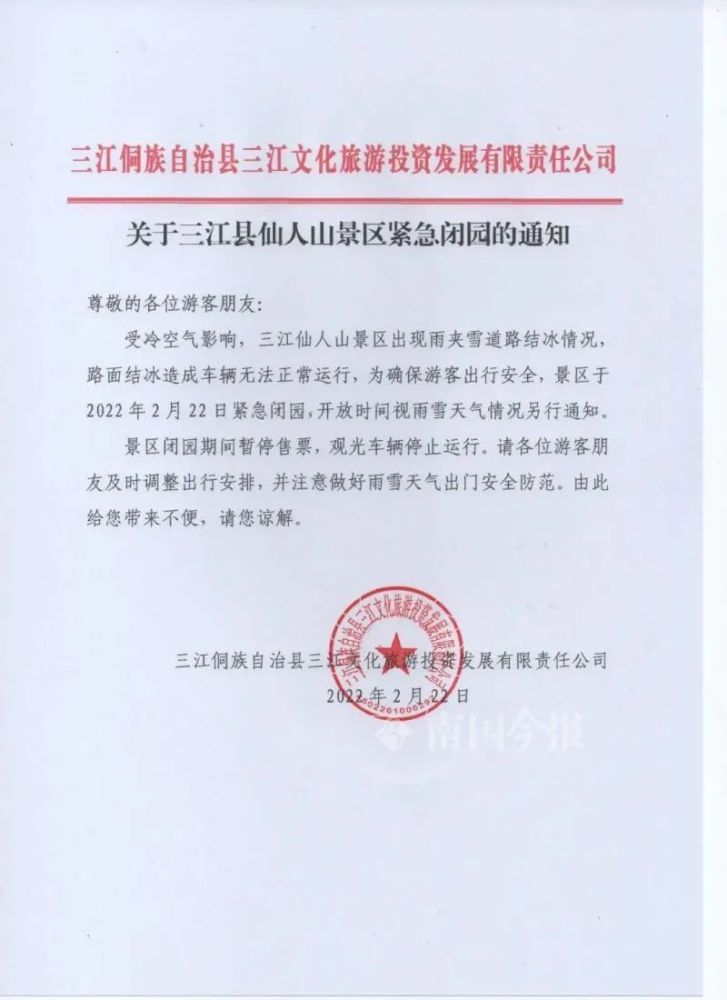 该景区于2月22日紧急闭园,开放时间视雨雪天气情况另行通知。景区闭园期间暂停售票,观光车辆停止运行。