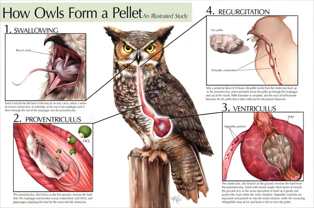 因为猫头鹰的进食习惯可以称得上是囫囵吞枣,它们在抓到了猎物之后并不会将其肢解或者细嚼慢咽,而是会将猎物整只都吞下去。虽然有些噎得慌,但好在它们胃中的胃液还是能够帮助消化绝大部分的。