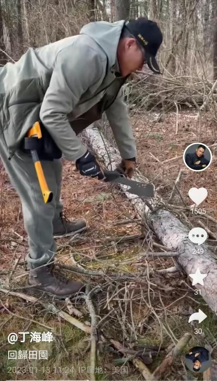 近期网络电影劳模,不久前才因为晒出美国砍柴生活照引发争议的“武松”丁海峰。