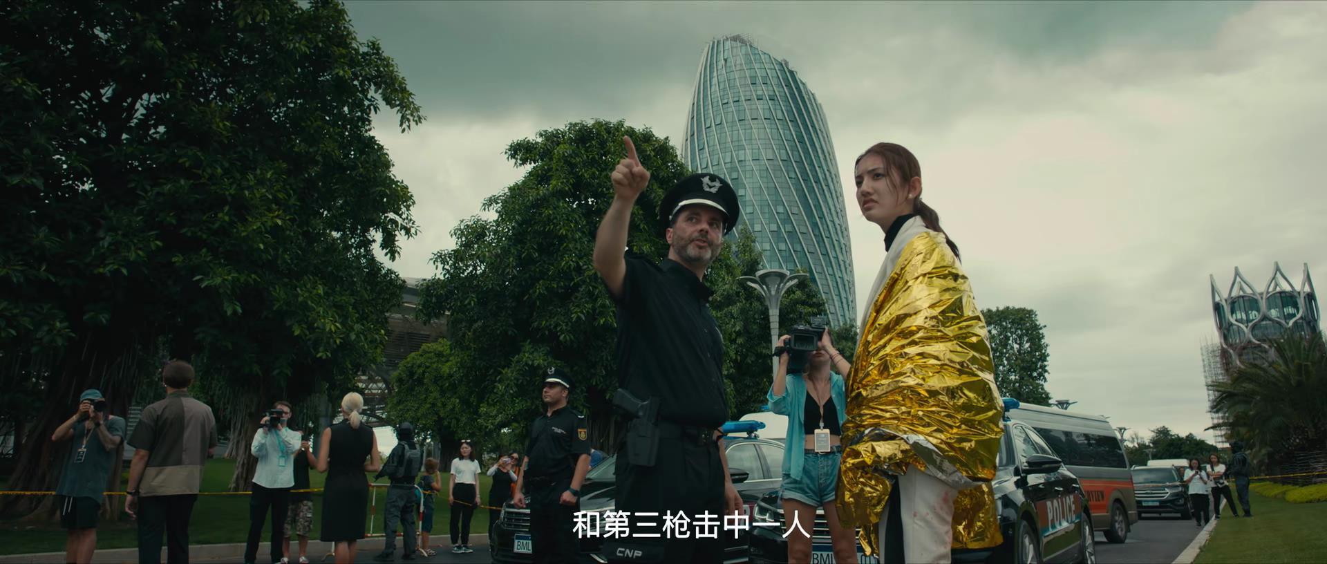 被血溅一身的女记者正在惊魂未定之间,警车声响起,狙击手撤离。
