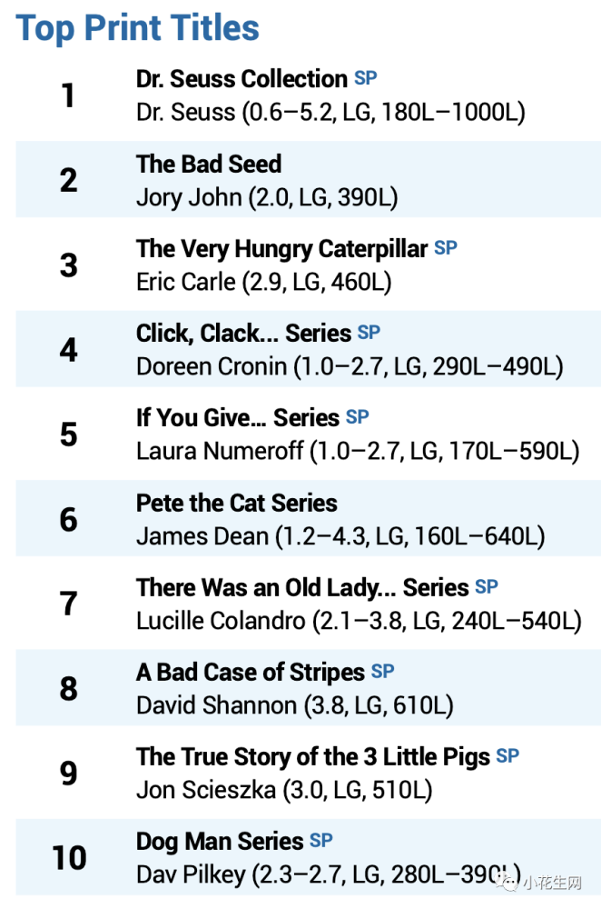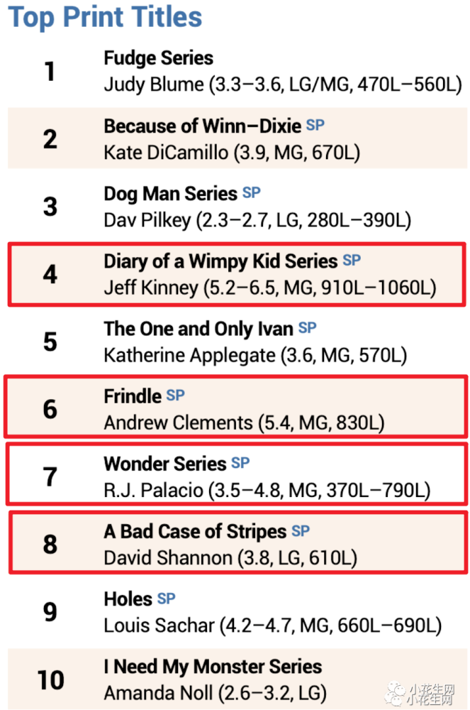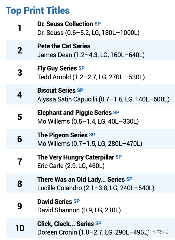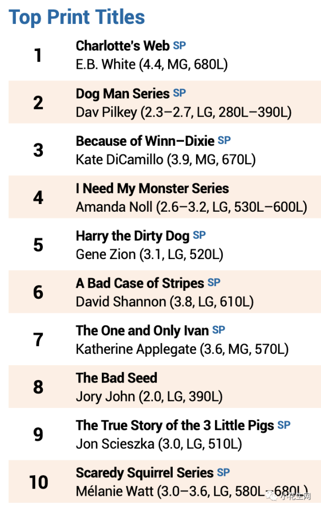 为此,我们还专门查了一下美国小学1-4年级的常读书,下面是1-4年级Top阅读榜。