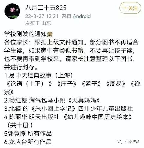 学校把通知下发给了家长,让家长封存这些“不再适合学生读”的图书。