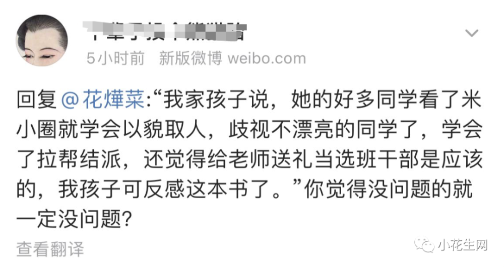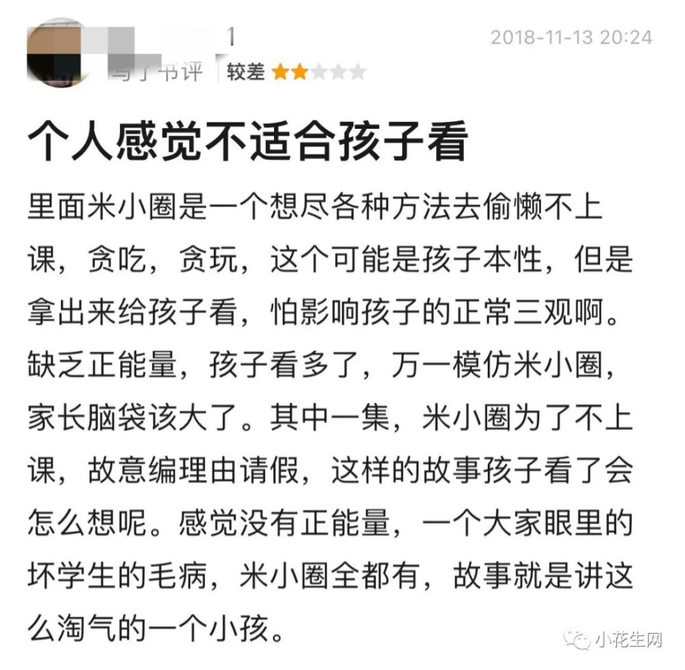 认为“米小圈”小朋友缺乏正能量,“坏学生”的毛病他全都有。