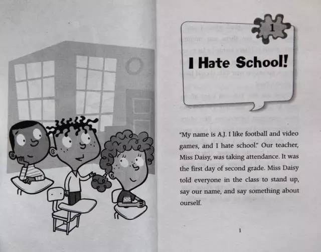 在《疯狂学校》里,每本书的开头第一句都是I hate school,和小孩产生共鸣,最后导向的却是满满的正能量,引导孩子从内心里认同学习的价值。