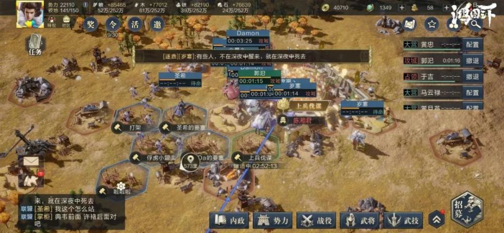 19时30分,【纵横世界】准时攻打临洮,数十分钟便成功拿下临洮。此时【逐鹿天下】主力部队,稳步推进,所行所过,沦人飞地,壮哉!凉州虎狼,血躯人墙。【逐鹿天下】已大势难挡。留青山祭儿郎,谋冀州而退并幽。
