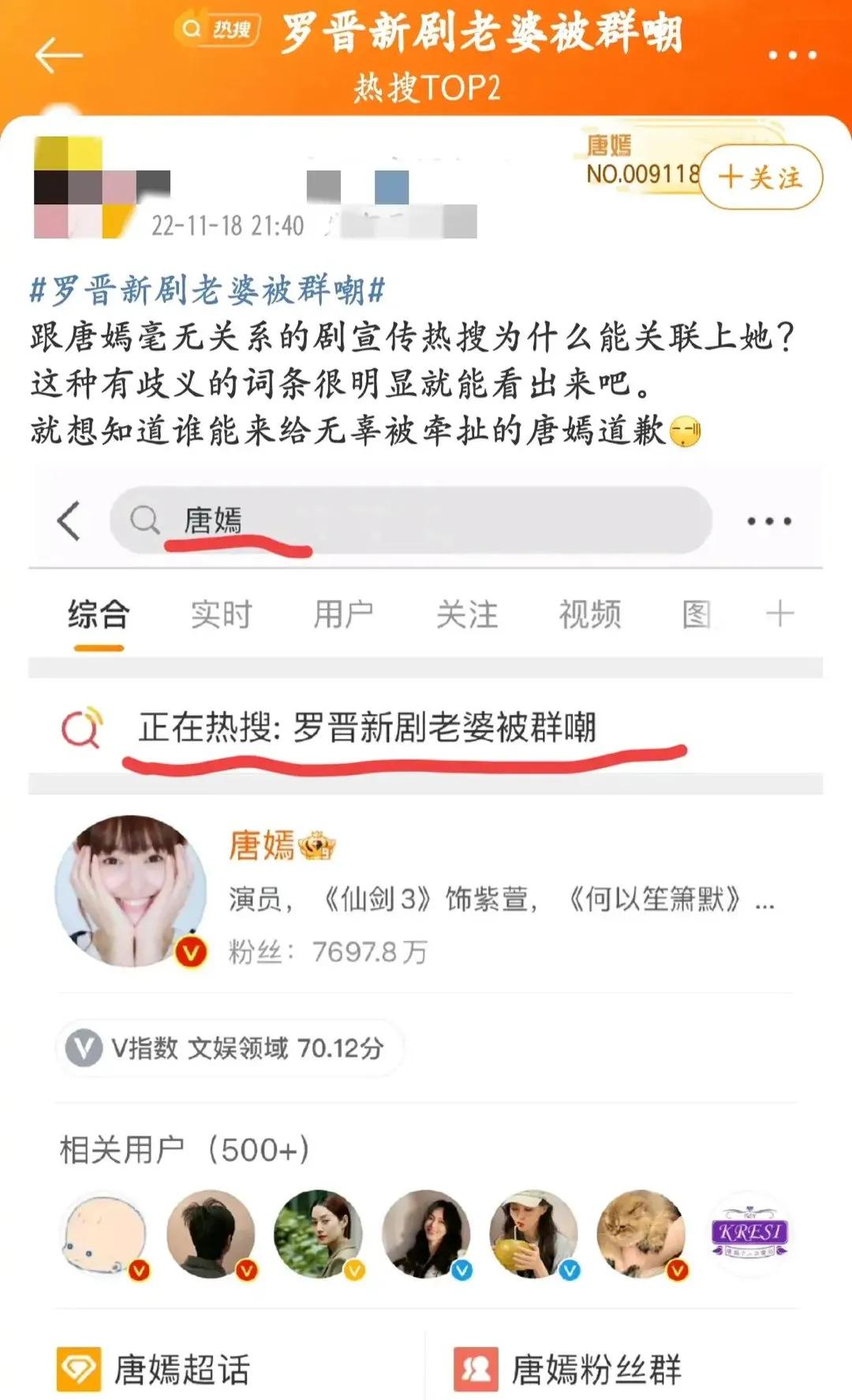 虽然这个词条是配合电视剧《天下长河》的宣传,但直接用演员本人的名字真的很容易发生误会,而且这条热搜还直接关联了唐嫣,属实有些冒犯了。