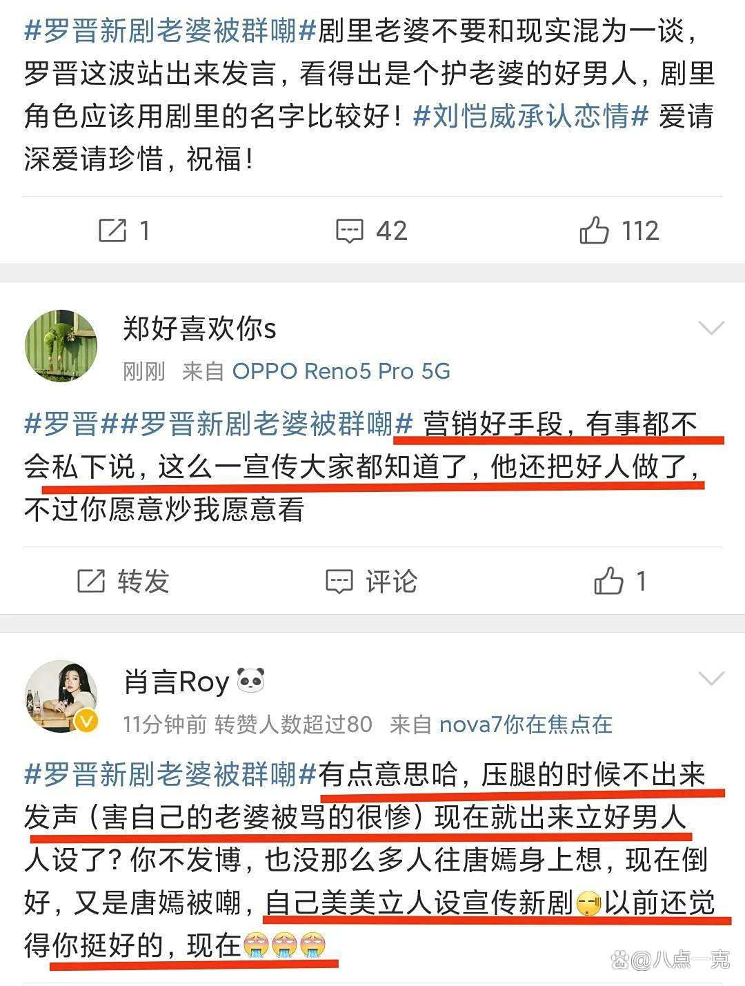 还有网友怒怼罗晋,微博发文到底是几个意思,之前在片场和张慧雯相互压腿的时候一言不发,现在又打着保护家人的名义乘着变相宣传自己的新剧,又当又立,简直让人反感。