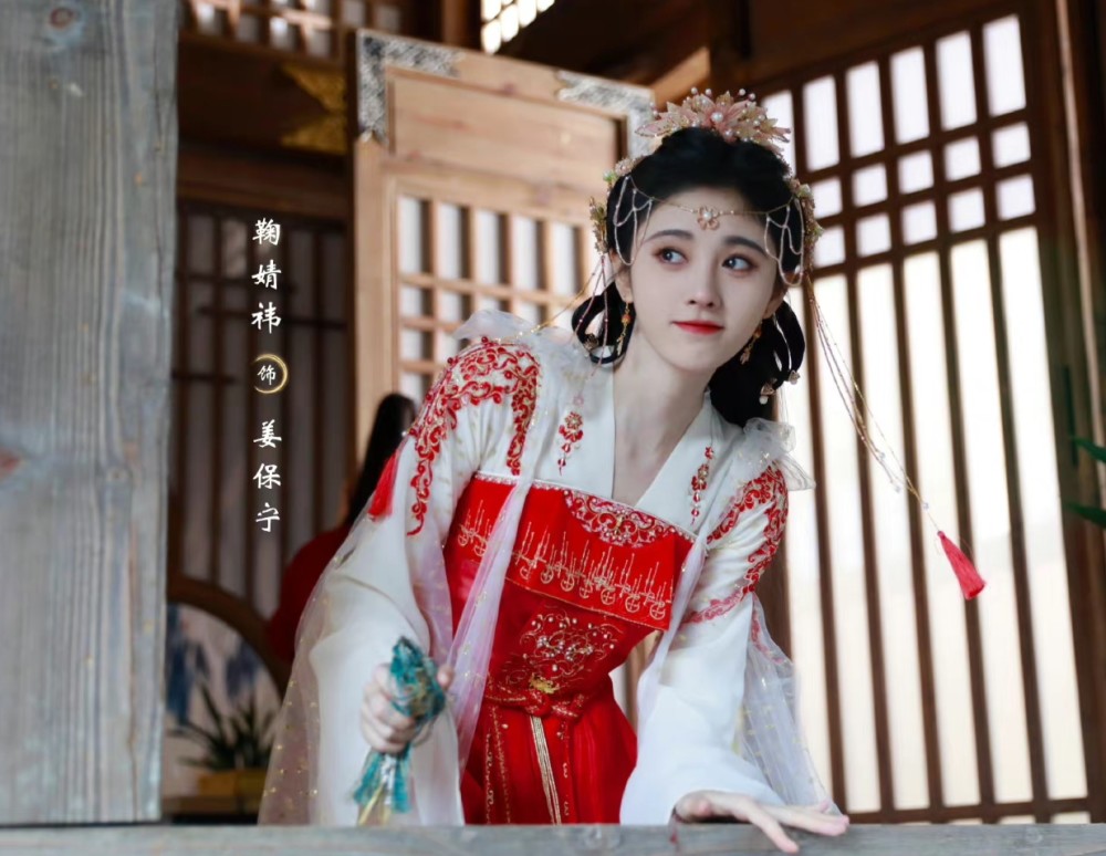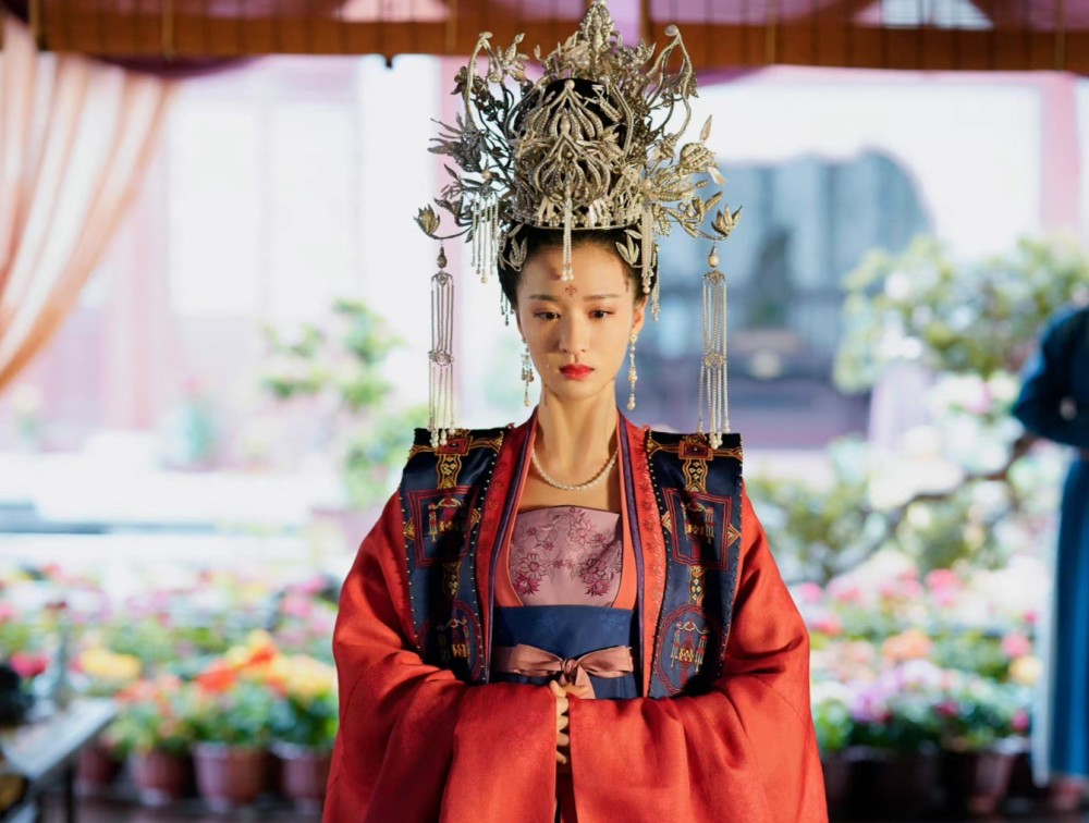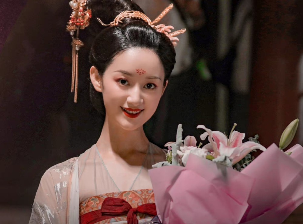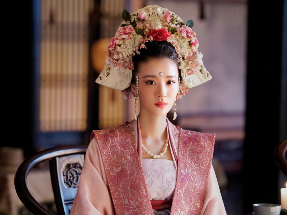 王楚然饰演的贵妃张妼晗是后宫中最得宠的女人,因此她的服饰和造型比较偏华丽,满头花朵装饰也不会显俗,反而很惊艳。