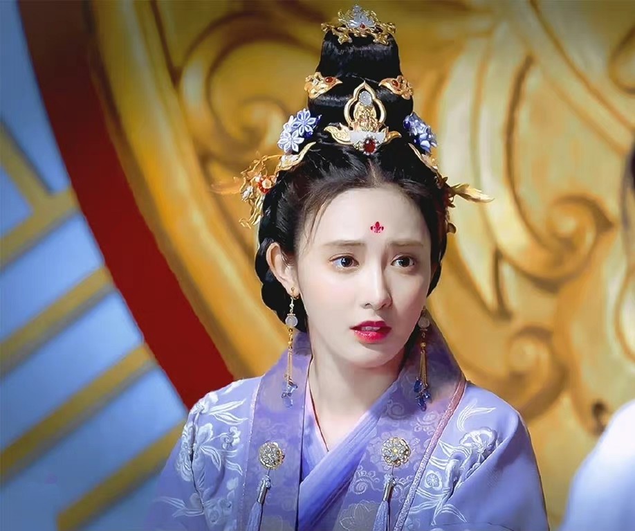 蒋依依的帝女之所以受欢迎还是因为造型贴合,她在这部剧中镜头虽少,但每一套造型都非常精致,把头发全部盘起来,露出她精致的五官,整个人气质都提升了。