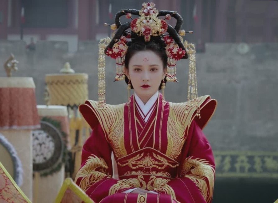 大婚时所穿的红色婚服和头饰发型在众多古装剧中也属于比较华丽精致的一款。