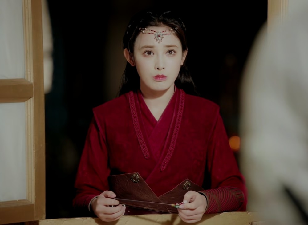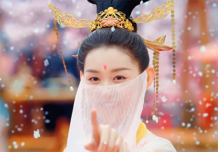 小枫刚出场时所穿的那一袭红裙,额间点缀上与衣服相配套的额饰,鲜艳亮眼,美轮美奂。